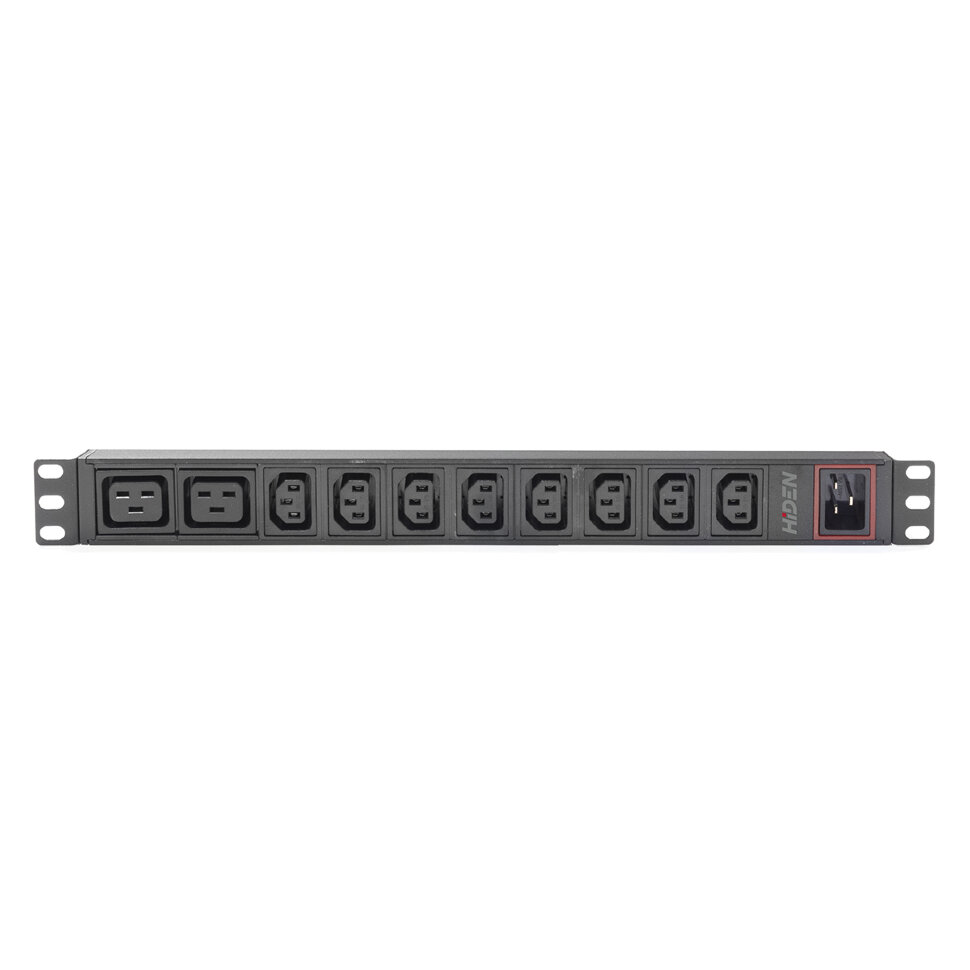 Блок розеток однофазный горизонтальный, 19", 8 розеток C13, 2 розетки C19, 16A, вход питания C20