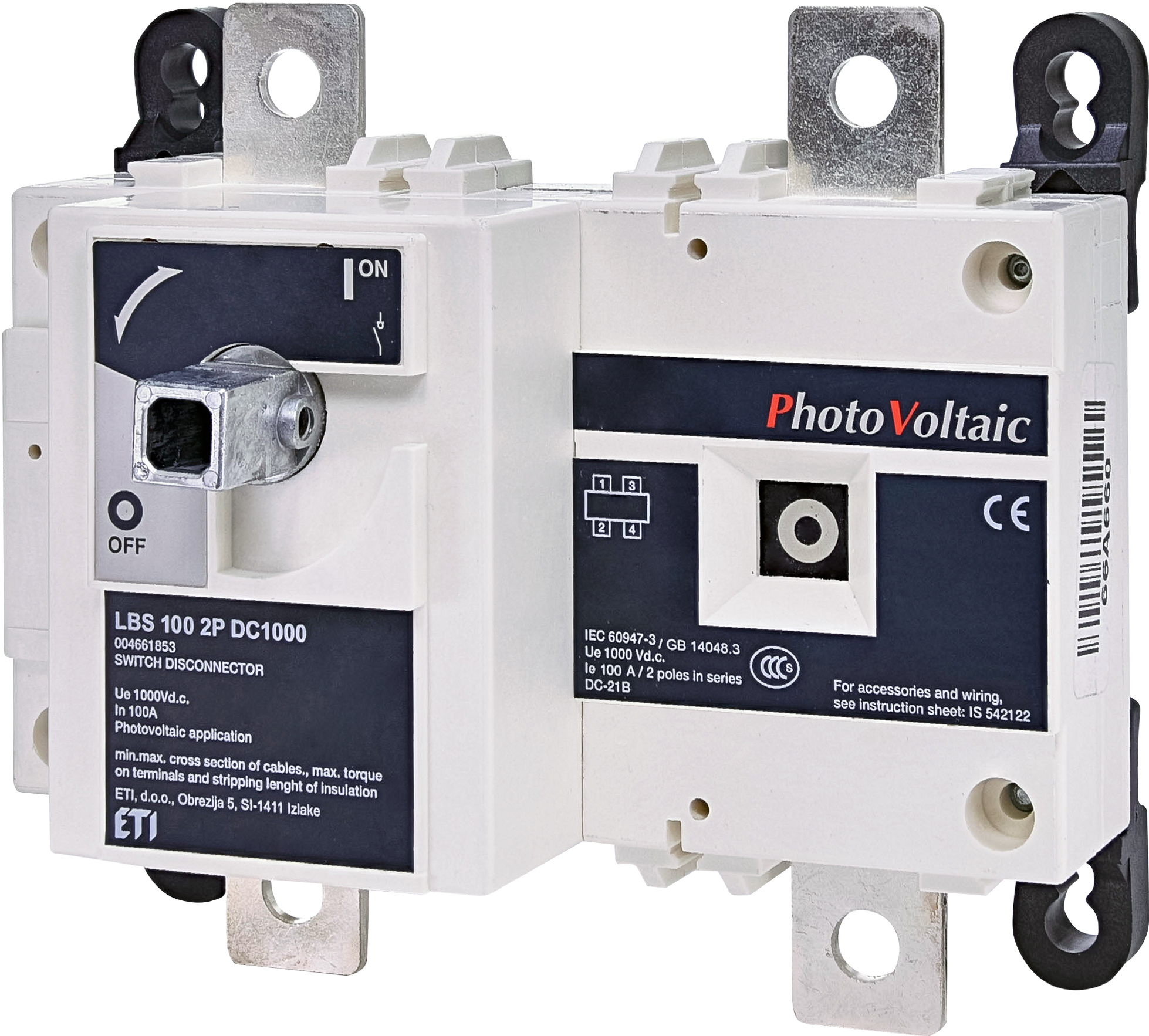 Выключатель нагрузки LBS 100 2P DC1000 ("1-0", 100А, 2P)