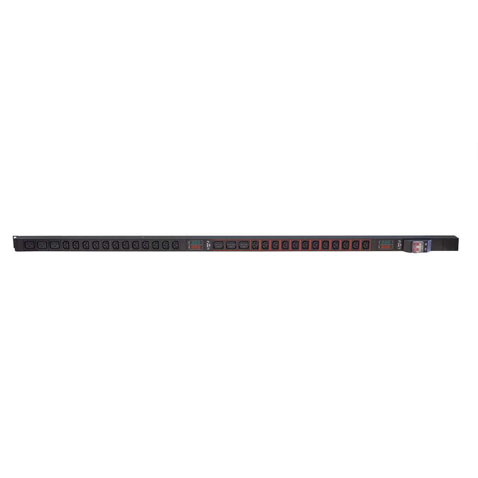 Блок розеток HIDEN однофазный вертикальный, 24 розетки С13, 6 розеток С19, 32A, авт. выкл. (2x16А), амперметр/вольтметр (2шт), кабель питания 3м (3х4мм2) с вилкой IEC 60309