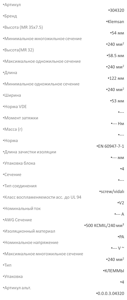 Силовой клеммник на DIN-рейку 240 мм.кв., болт., (серый); AVK240 B